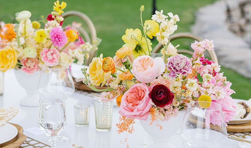 Centerpieces: Stylish floral centerpieces for guest tables, couple tables, and dining areas.